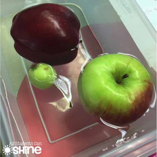 Each student made a guess, and then we tested different apples in water.