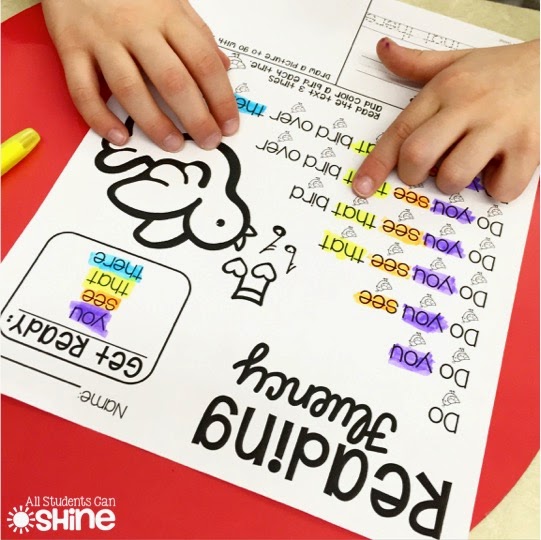 See those little birds under each word? Those are there to help my kiddos point as they read